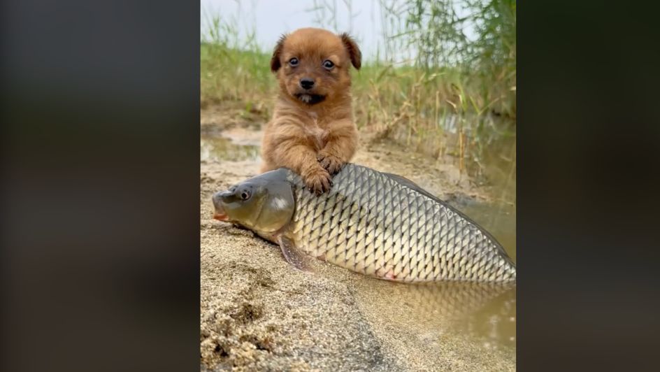 Clearly, this puppy does NOT feel the same way after “befriending” a fish who’s desperate to return to its watery home. (Don’t worry – unlike Jack, the fish lives!)