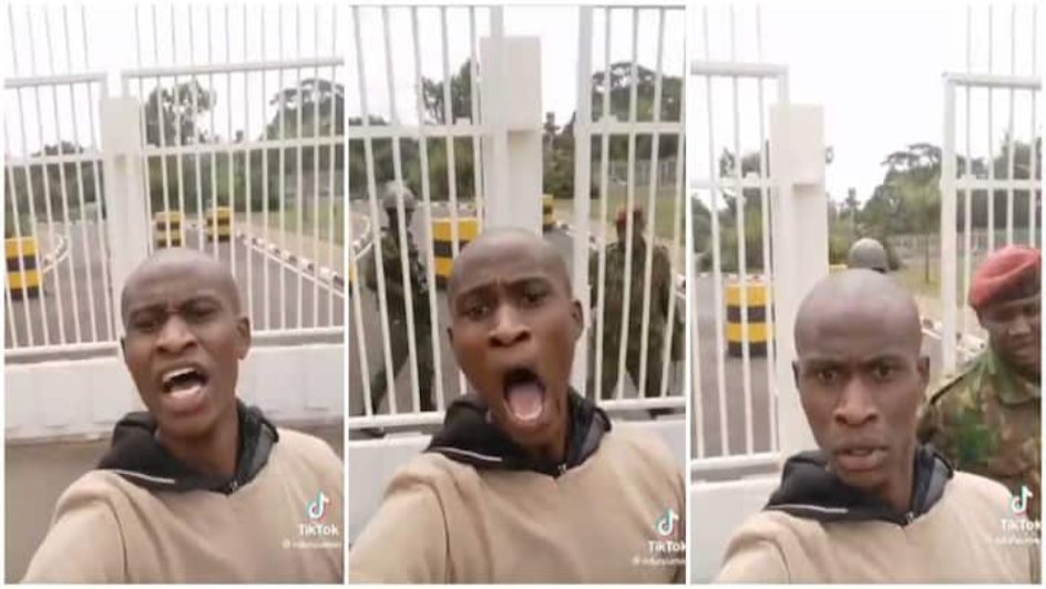As you can see, he decided to take chances by screaming outside the State House in Nairobi. Which, by the way, doesn’t allow photography and videography, and is heavily guarded, as seen by the guards approaching him.